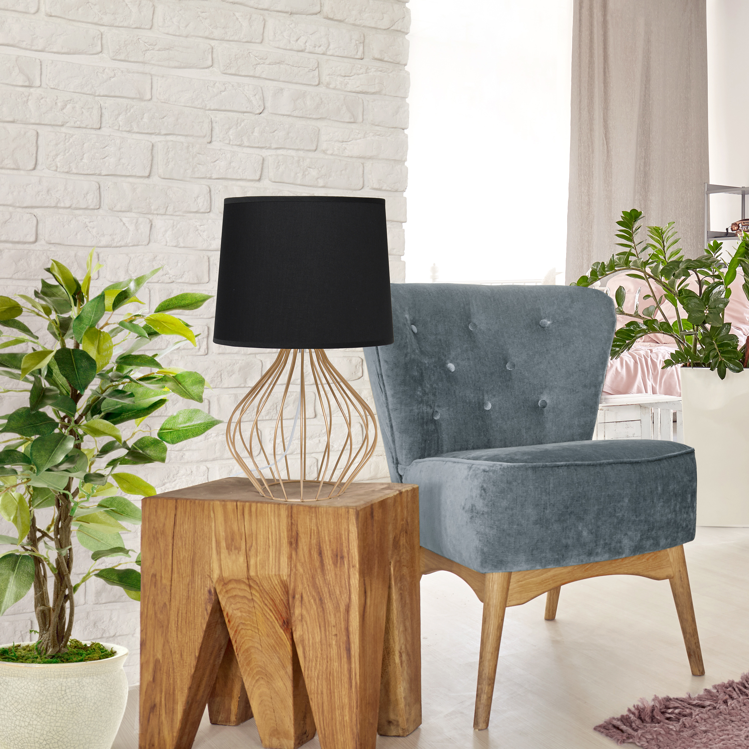 Simple Designs 19.75″ Open Wire Geometric Table Lamp, for Living Room, Bedroom, Office, Copper with Black Shade