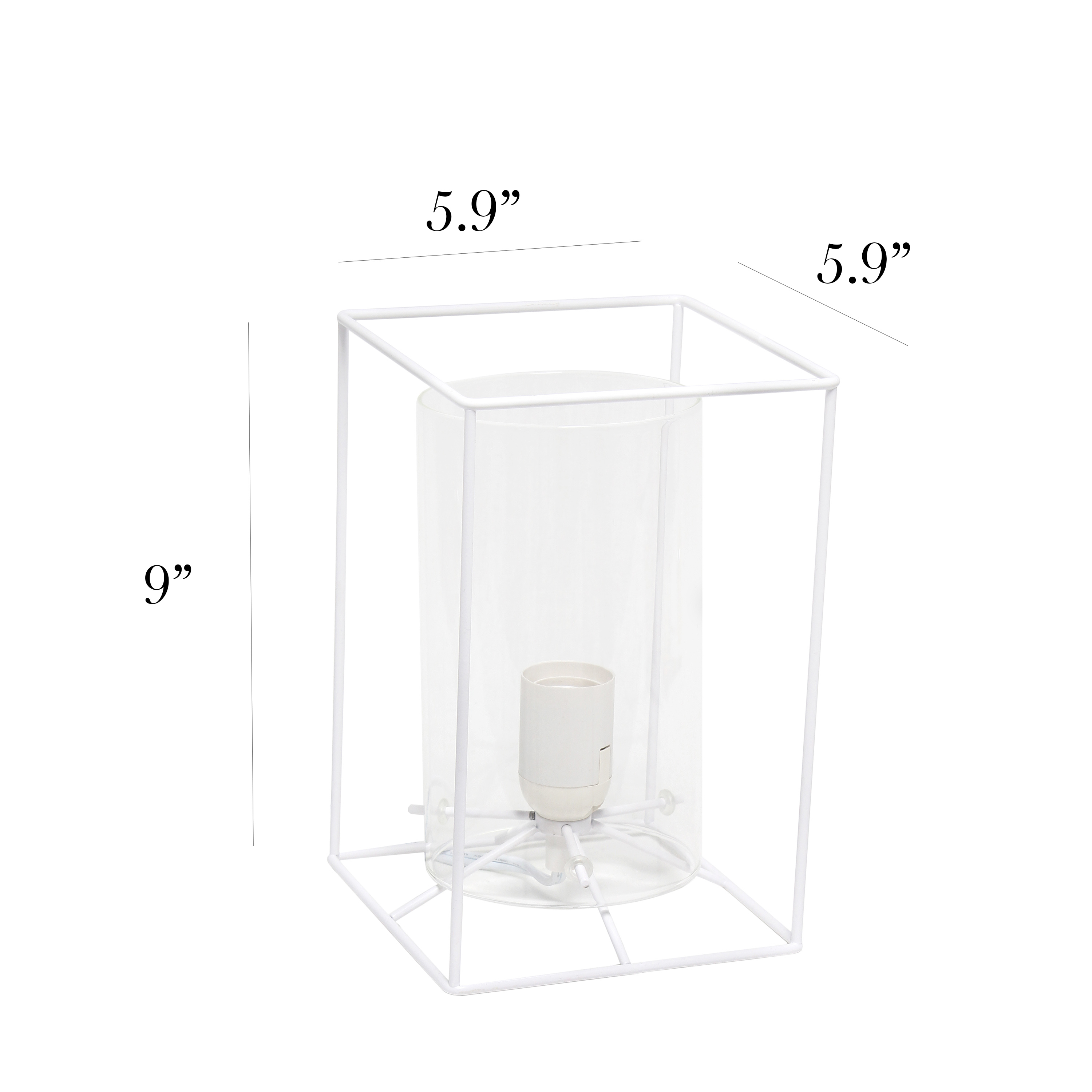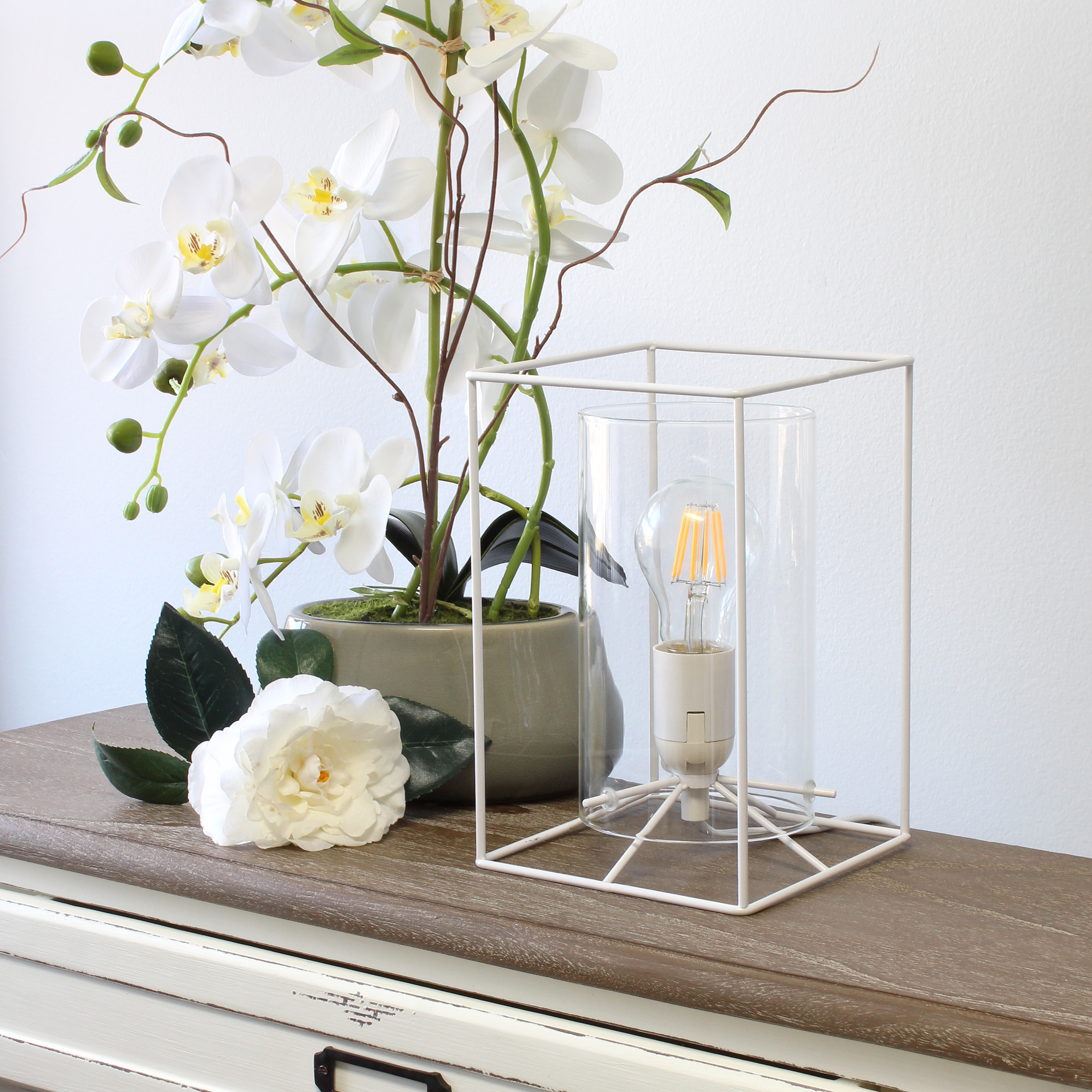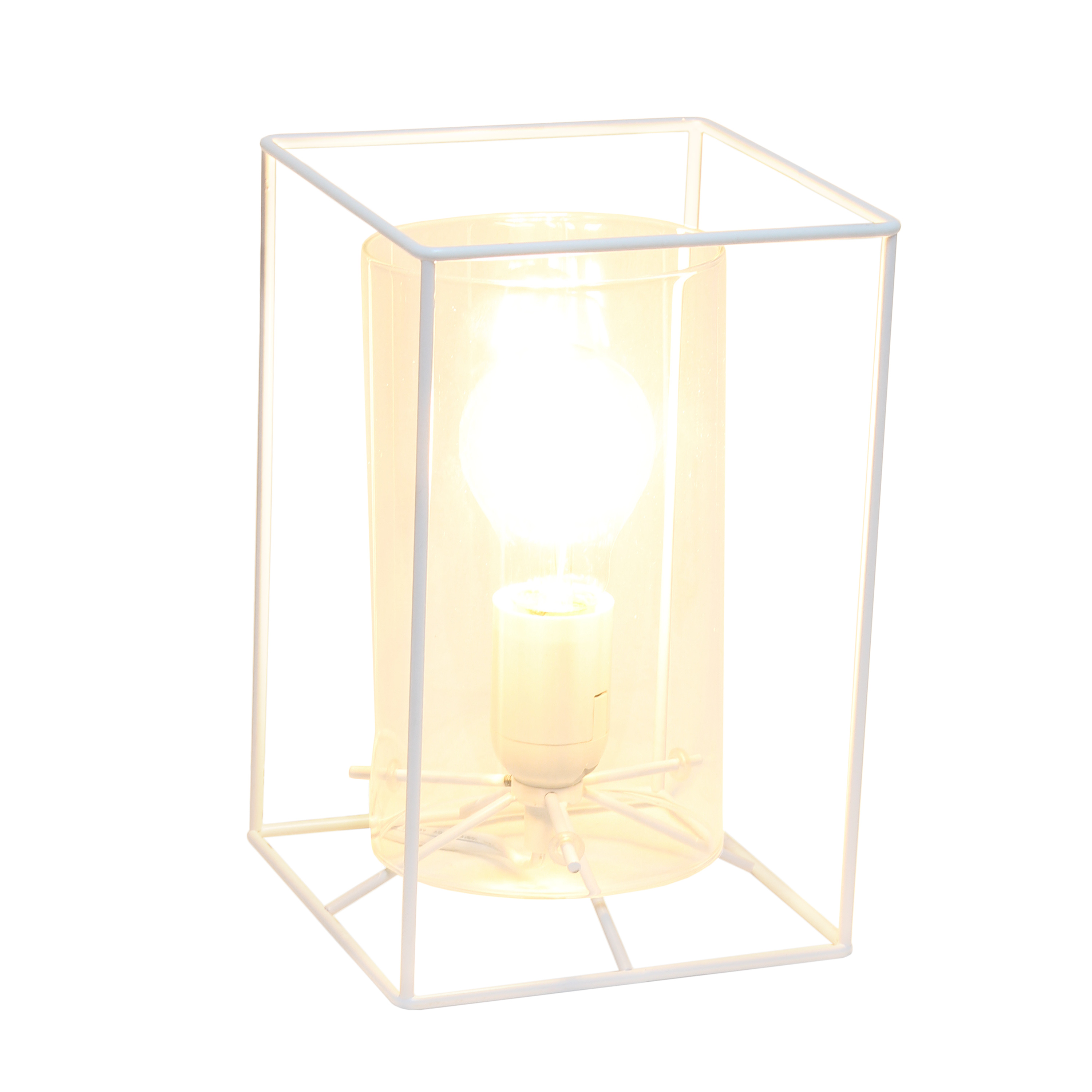 Small Exposed Glass and Metal Table Lamp, White/Clear